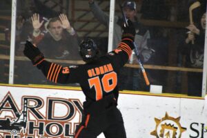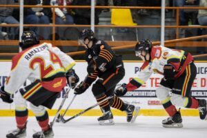 Ice Wolves take a couple more this period with Calahan Butler starting them off, followed by Tanner Ross just a few minutes later off of a shorthanded man disadvantage. Butler takes one more deep in the period off of another power play to put the score at 4-1, Ice Wolves leading. Headed in to the third period the Ice Wolves’ Butler earns himself a hattrick and putting New Mexico up 5-1 early in the third. Carter Lehmann manages to sneak one past Ice Wolves defense, but unfortunately this would be our last goal of the night as Oscar Schneider puts the final pin in the game with one more goal. Ice Wolves walk away from Game 1 with a 6-2 victory over the Rhinos.