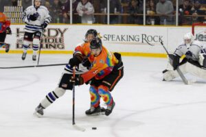 Second period action starts off after first intermission and both teams return to the ice trying to change up their strategies. Huero RIvera earns himself a goal, putting the Rhinos up 2-0 halfway through the period. Brahmas didn’t take too kindly like that and within a few minutes find themselves in a scuffle with a few of our boys. Unfortunately for the Brahmas they were still unable to put any points up on the board during the second period. However this luck would change as Charlie Wilson gives the Brahmas their first goal of the night, cutting the lead in half to just 2-1, Rhinos still out in front. Akira Shimamoto takes one more for El Paso with just seven minutes left in the period, and cementing the win at 3-1.