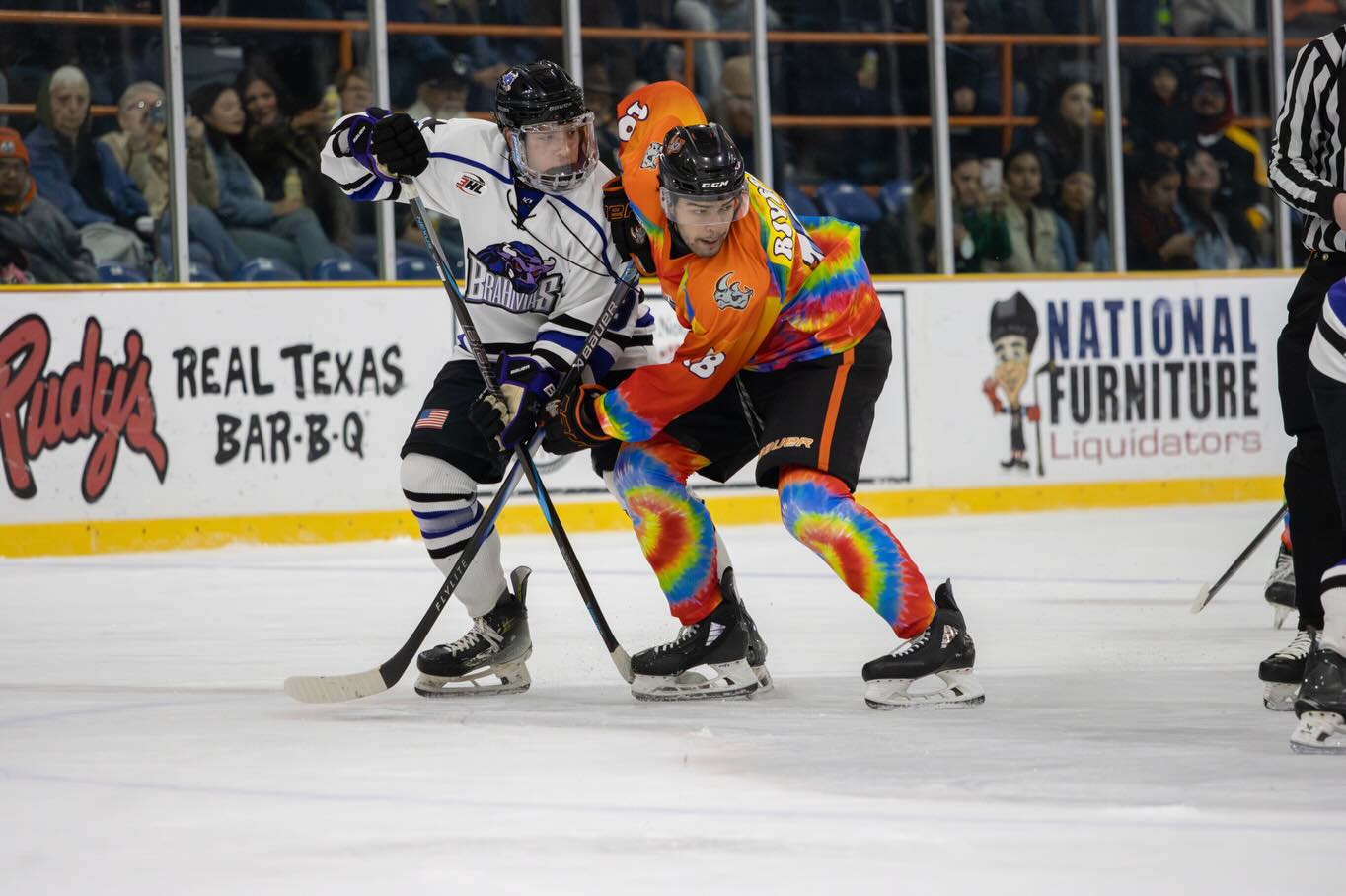 Saturday: Texas Brahmas 4 @ El Paso Rhinos 3 – Rhinos & Brahmas are back on the ice today for a round 2 rematch as both teams are still fishing for more league points. First period is relatively quiet with 11 shots on goal from the Rhinos to just 7 on the Brahmas, but this was only a lull in the action as the real game had yet to truly start. 0-0 at the start of the second period and the Brahmas are already postured for aggressive plays. Jayani Benson and John Scharf take two goals for the Brahmas, setting them up with a 2-0 lead by the halfway point in the game. This lead wasn’t to last though as our very own Donovan Bradford puts us on the board with just 8:37 left to go in the second. Bradford finds himself in the perfect position to take a second goal in the last moment of the period as well, tying the game at 2-2 headed in to the third period.