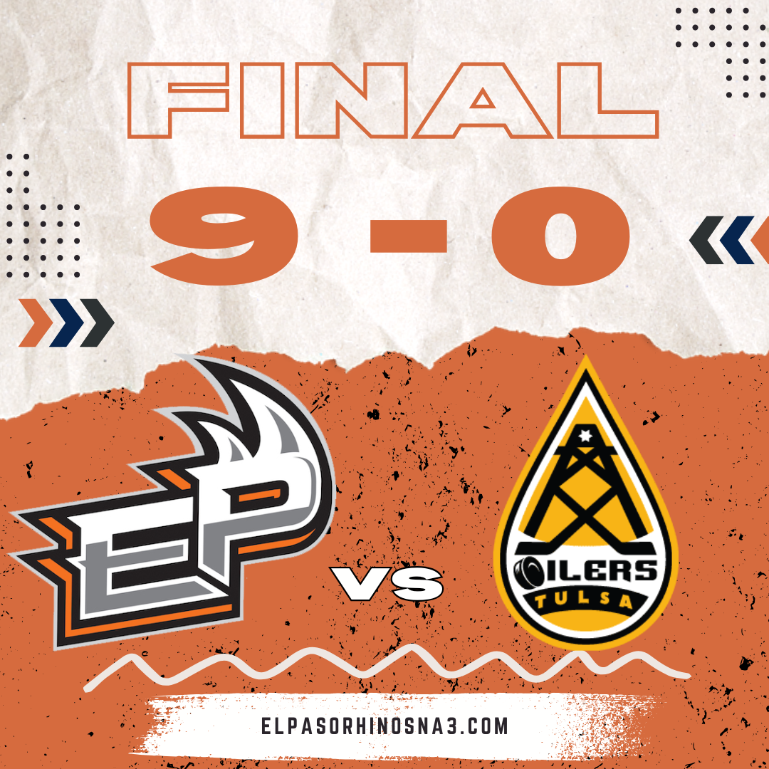 Saturday: El Paso Rhinos 9 @ Tulsa Oilers 0 – Rhinos & OIlers are back on the ice tonight after last night’s blowout eager to get back to the action. Oilers took some lessons from last night’s beating and prep their defenses early, keeping the Rhinos at bay for the first half of the period. It wouldn’t be until Mikhail Levaniuk puts the Rhinos on the board with 8:02 left to go on the clock and setting the score at 1-0. Carter Tuplin brings himself to the net and takes a goal for himself at 6:36, followed just a minute later by Parker Brinner, increasing the lead to 3-0 at the end of the first period.